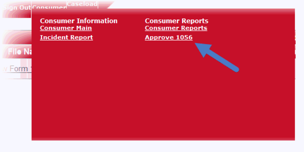 2. Click on the "Approve 1056" link in the Consumer drop down menu