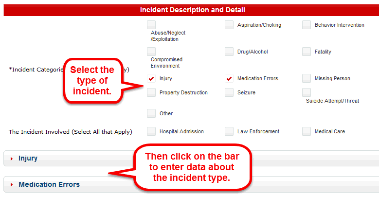 Step 4: Select the type of Incident. Then enter its corresponding data.